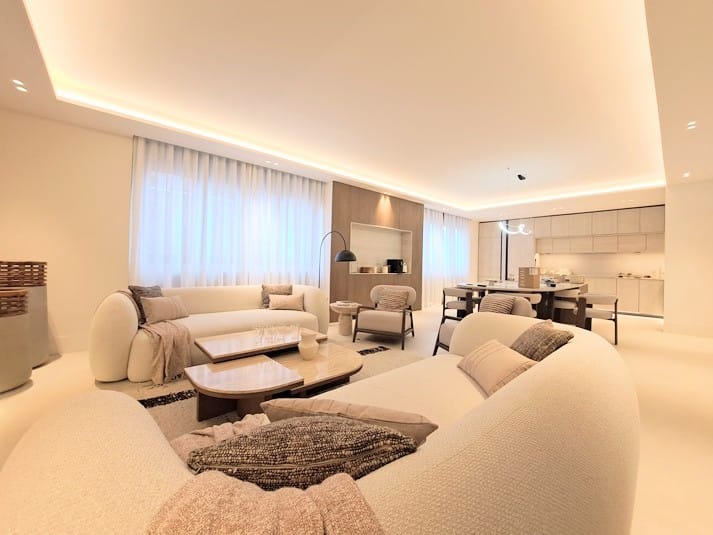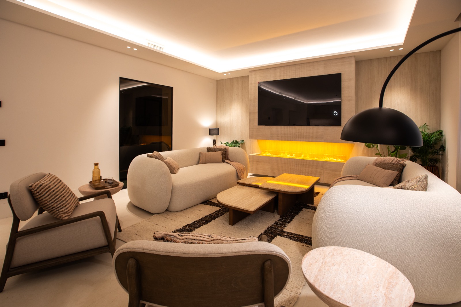 No todas las propiedades cuentan una historia. Esta sí. Creada por una familia con raíces en la isla de Ibiza, esta vivienda nace del deseo de trasladar al centro de Madrid la esencia relajada y orgánica del Mediterráneo: líneas curvas que suavizan la arquitectura, tonos neutros que transmiten calma y una cuidada combinación de madera, piedra y texturas naturales que evocan el alma de la isla.