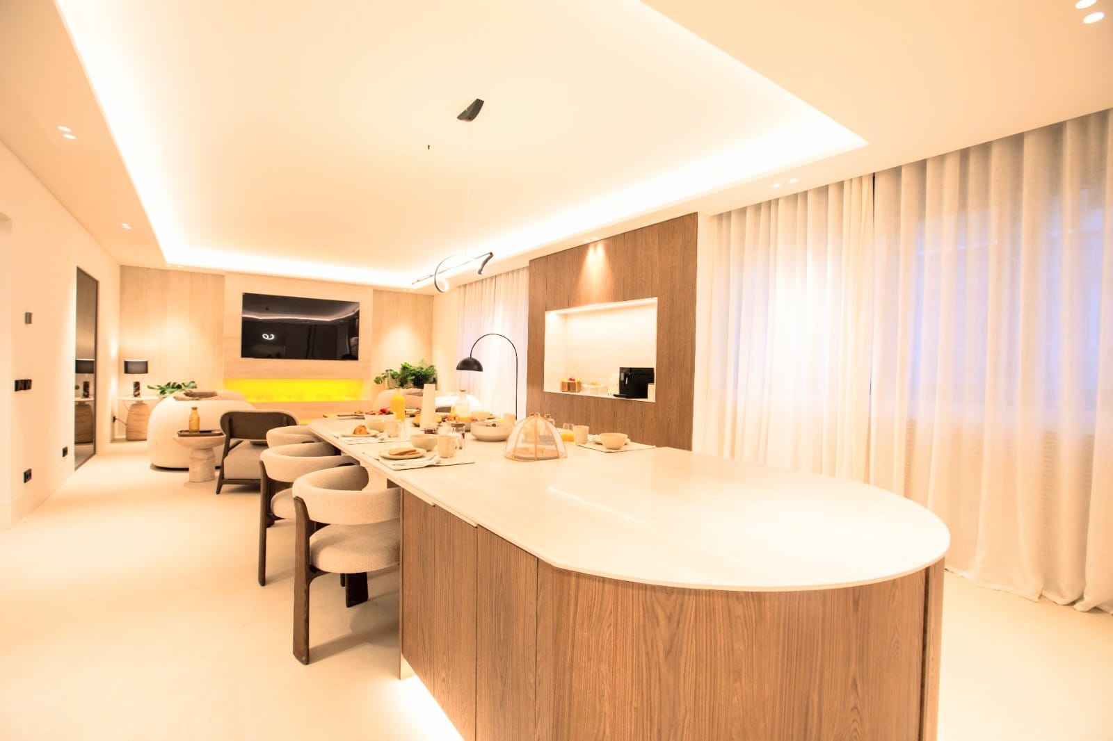 La reforma integral se ha ejecutado con un enfoque arquitectónico de alto nivel, creando espacios fluidos, cálidos y atemporales. El gran salón y comedor, concebidos como el corazón social de la vivienda, invitan a disfrutar de reuniones privadas en un entorno sofisticado, mientras la cocina contemporánea se integra con naturalidad, combinando estética y funcionalidad.